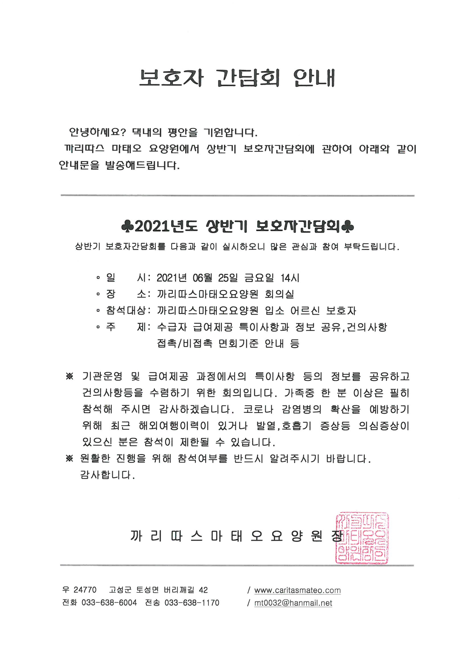 | 2021년 상반기 보호자 간담회 실시 | 작성자 : 관리자 |