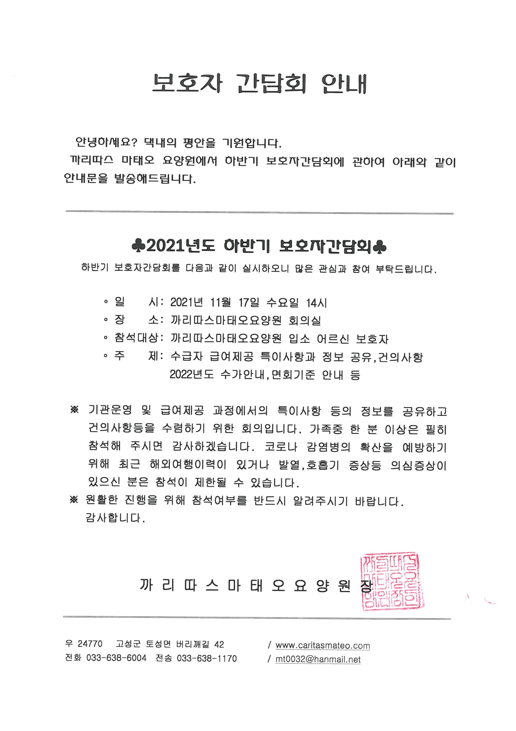 | 2021년 하반기 보호자간담회 실시 | 작성자 : 관리자 |